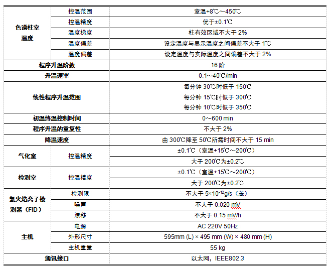 标准配置 气相色谱仪主机、氢火焰离子化检测器、色谱工作站